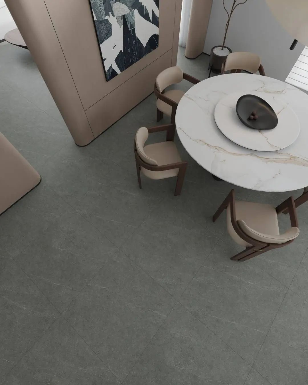 数码高清喷墨+微模压制,捕捉砖面细微起伏细节,1:1还原天然石材的微纹理和柔润自然的肌肤触感。